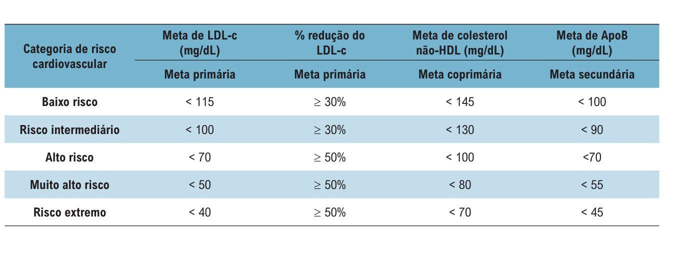 Essa é a tabela da última Diretriz Brasileira de Dislipidemias da Sociedade Brasileira de Cardiologia de 2025.